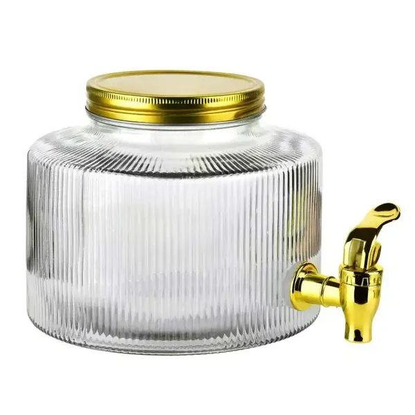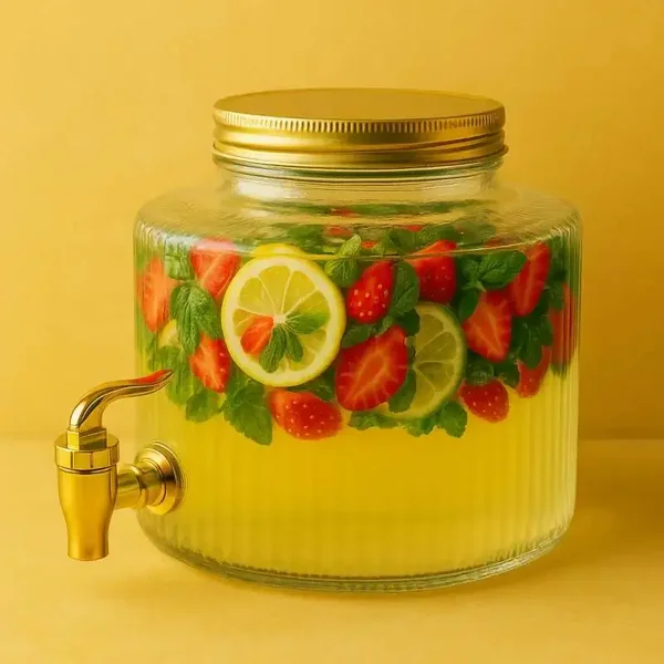Afmetingen: 18 × h15 cm. diameter opening: 10 cm handig formaat om op tafel of aanrecht te zetten Functioneel element: ingebouwd kraantje . gemakkelijk drankjes serveren Gebruik: voor feestjes, tuinen, familiebijeenkomsten en dagelijks gebruik Waarom . Maakt het makkelijk om drankjes te serveren zonder te morsen . Geeft een stijlvolle touch aan elk feest of zomertafel . Ideaal voor koude dranken, water met citroen, limonade of fruitmixen .