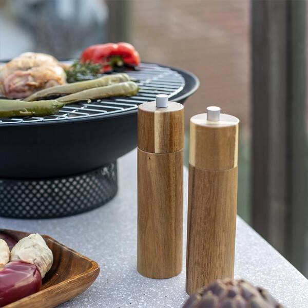 Breng een vleugje natuurlijke elegantie in je keuken met de Livoo zout- en pepermolenset van FSC®-gecertificeerd acaciahout.
