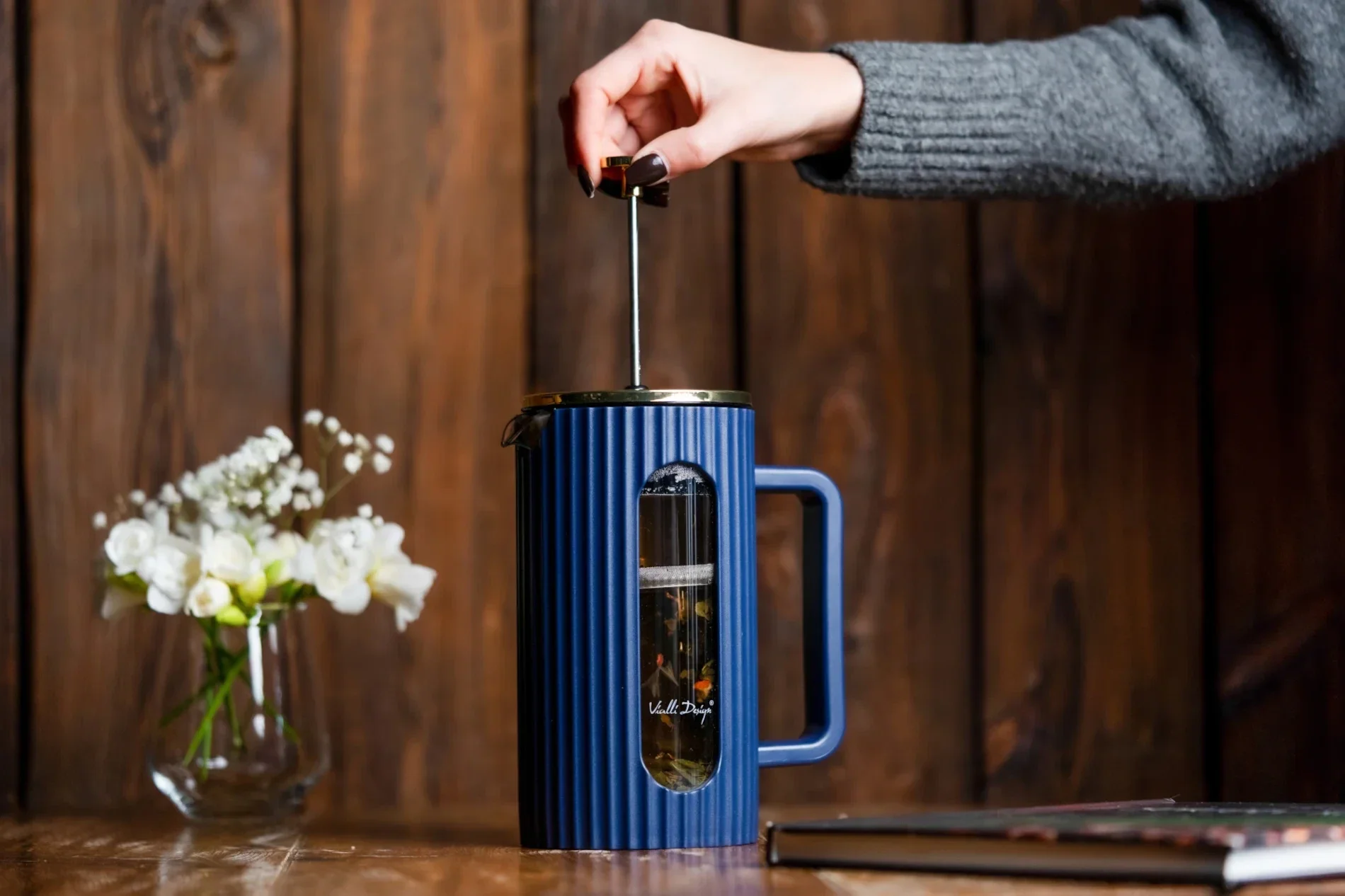 Het roestvrijstalen zuigermechanisme en de zeef maken het snel en eenvoudig om de koffiedik van de koffie te scheiden . Giet simpelweg je favoriete mengsel in de kamer, giet er kokend water overheen en wacht tot de drank het gewenste zetniveau heeft bereikt. Wanneer je de zuiger indrukt, scheidt de zeef de koffiedik/kruiden van de rest, zodat je kunt genieten van een heldere drank .