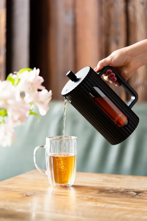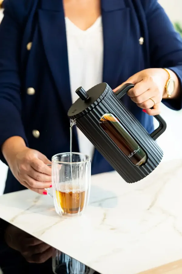 Druk de roestvrijstalen zuiger naar beneden en geniet van een heldere, volle smaak zonder restjes.